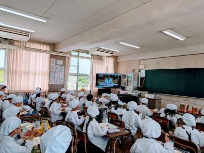 教室では、「給食いつもおいしいよ(1年生)」「五目汁が一番好き(1年生)」と児童に好評でした。