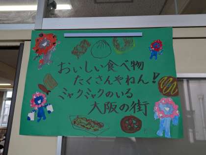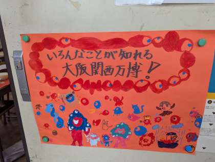 4年生の教室では、大阪万博にちなんだ掲示物が飾られていました。