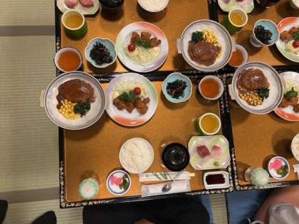 大広間でみんなで食べる食事は、格別です。よい思い出になることでしょう。