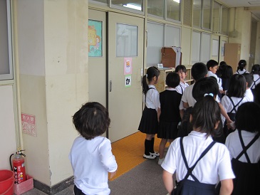 1年生が学校探検をするために、2年生がいろいろと案内しました。