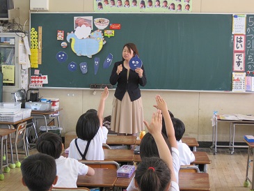 5月31日(火)、育和小学校より栄養教諭の先生が来校し、栄養学習を行いました。