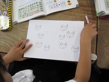 チューリップで考えたり、イチゴで考えたり、猫で考えたりと色々と想像を膨らませてお話を作りました。