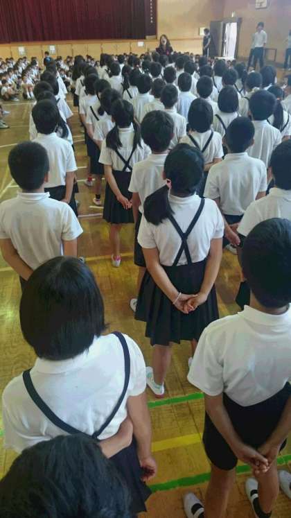 終業式では、1学期を振り返って学級の代表の子どもたちがスピーチをしました。