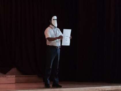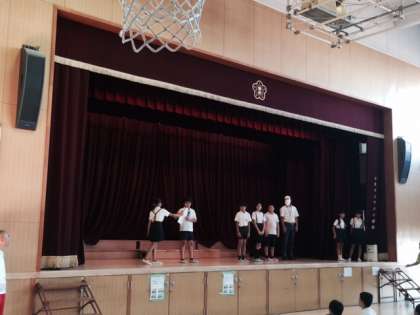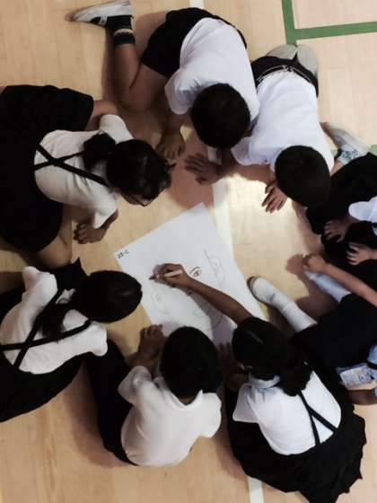 縦割り班のみんなで教頭先生の似顔絵を描きました。