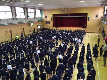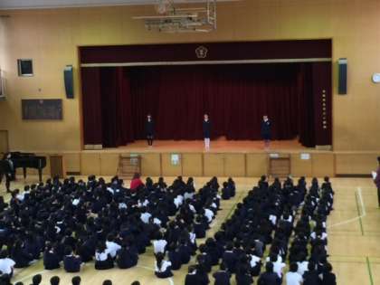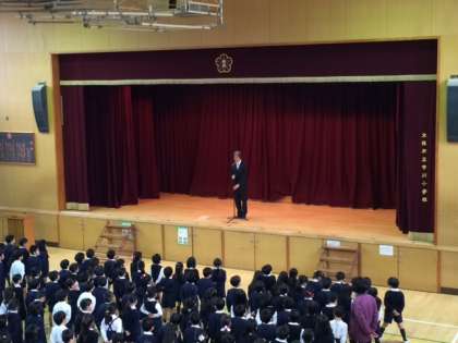 校歌を歌う子どもたちの元気な声が講堂に響きわたりました。