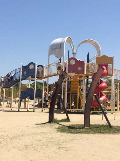 こどもの楽園に到着しました。小学生がいっぱいです。