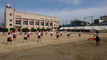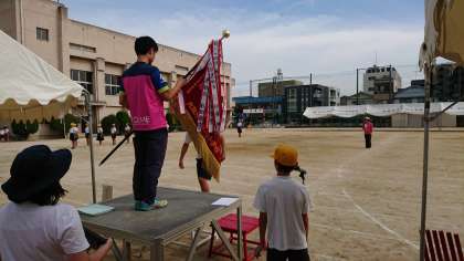暑い中、児童会や応援団が