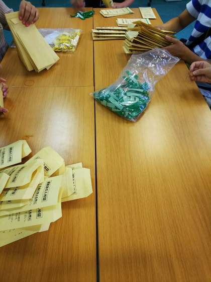 9月5日と12日の二日間にわたり、1年生の保護者様にご協力いただきながら、運動会の学年別リボンを作成していただきました。今川小学校では、観覧の入れ替えが円滑に行えるよう、色分けした学年別リボンを肩に付けていただいております。一つ一つ手作業で、皆さんに行き渡るようご準備していただきました。来年以降もリボンを活用しますので、お帰りの際には返却をお願いします。