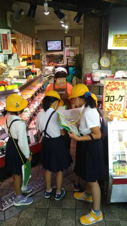 「お客さんに来てもらうためにどんな工夫をしていますか?」など、丁寧に質問し、一生懸命メモをとっています。