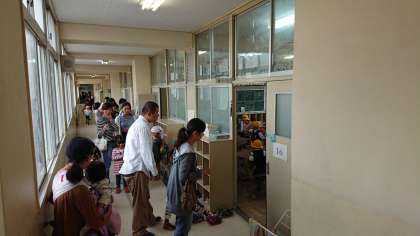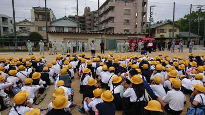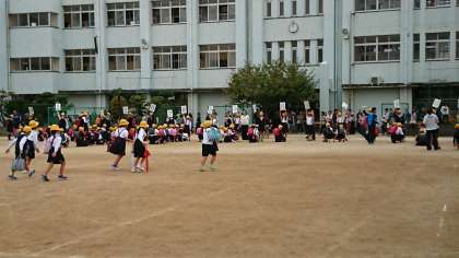 避難訓練後、地域子ども会ごとに引き渡し訓練をしました。
