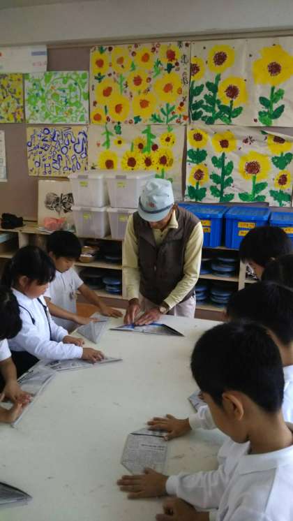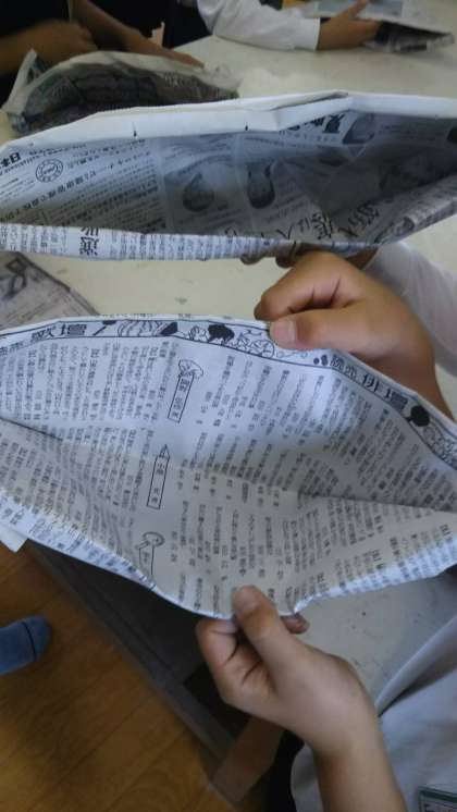 新聞紙でお皿を作りました。難しいところもありましたが、何とか完成しました。