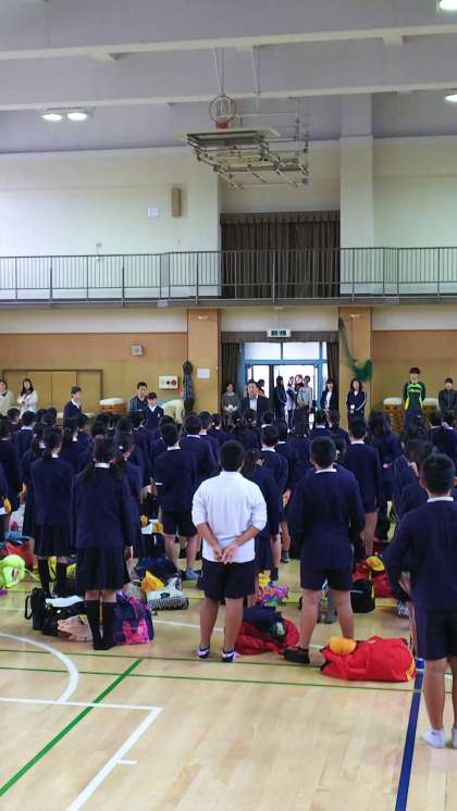 出発式を行いました。今からバスに乗って、今川を出ます。これからめざすは、滋賀県信楽です。今から焼き物体験が楽しみです。
