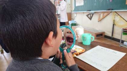歯の働きには、食べたり、話したり、顔の形を整えたりという働きや、正しい歯ブラシの持ち方や磨き方を歯科衛生士さんから教えてもらいました。