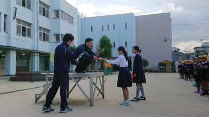 ミニバスケットボールクラブ、キックベースボールクラブ、バレーボールクラブで活躍した人やチームを、全校児童の前で校長先生より表彰されました。みんなからは、たくさんの拍手が送られてました。
