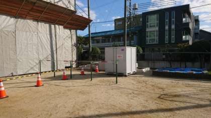 本校の講堂外壁改修工事に伴い、講堂裏にあった施設開放倉庫が使用ができなくなります。そのため、臨時として観察池前に倉庫を設置しました。地域の皆様にはご不便をおかけしますが、よろしくお願いします。