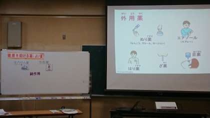 薬の種類や、薬を飲む時の水の量、薬の飲み方について、実験などや先生の実演から、とてもわかりやすく教えていただきました。