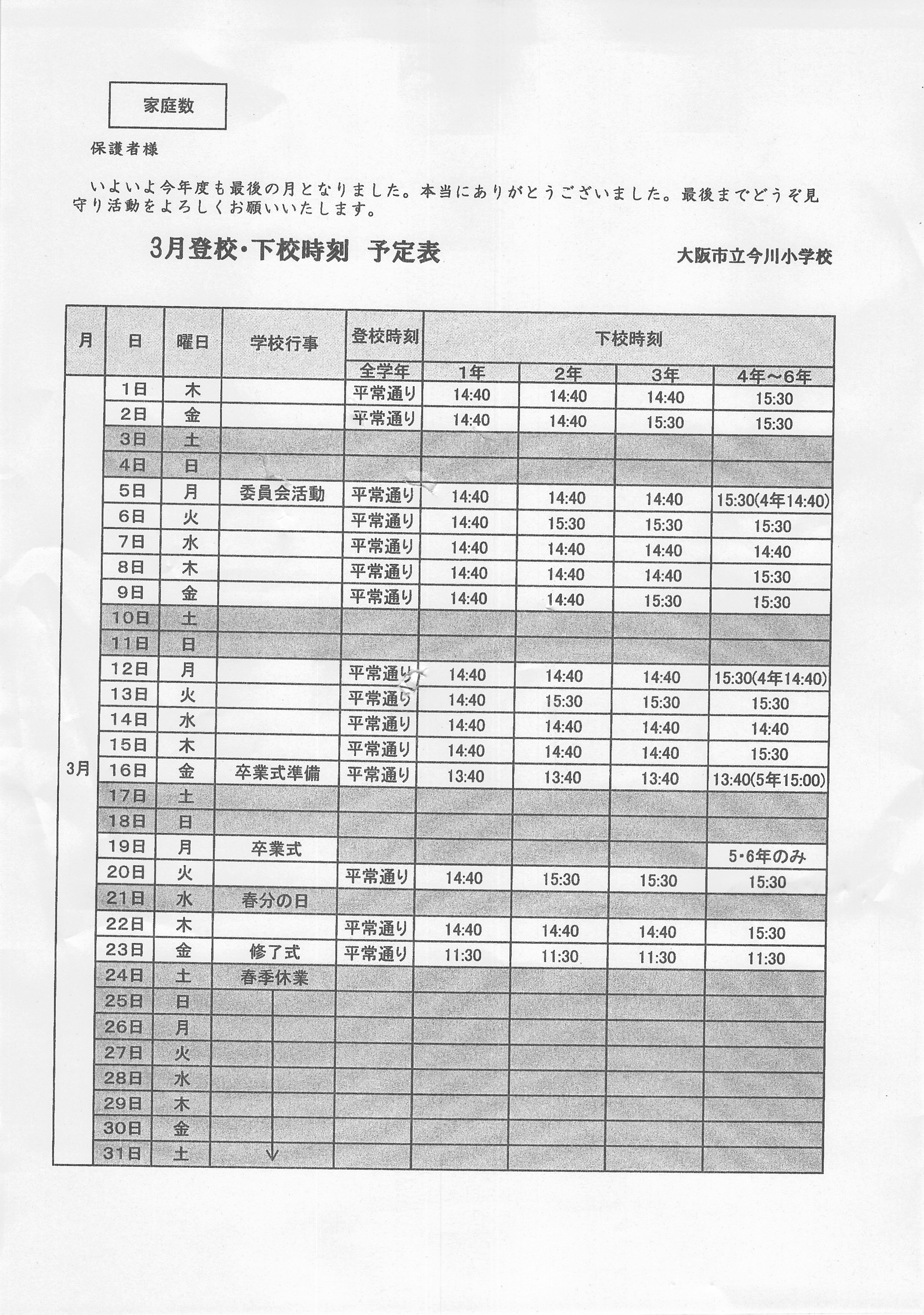 登下校時刻3月