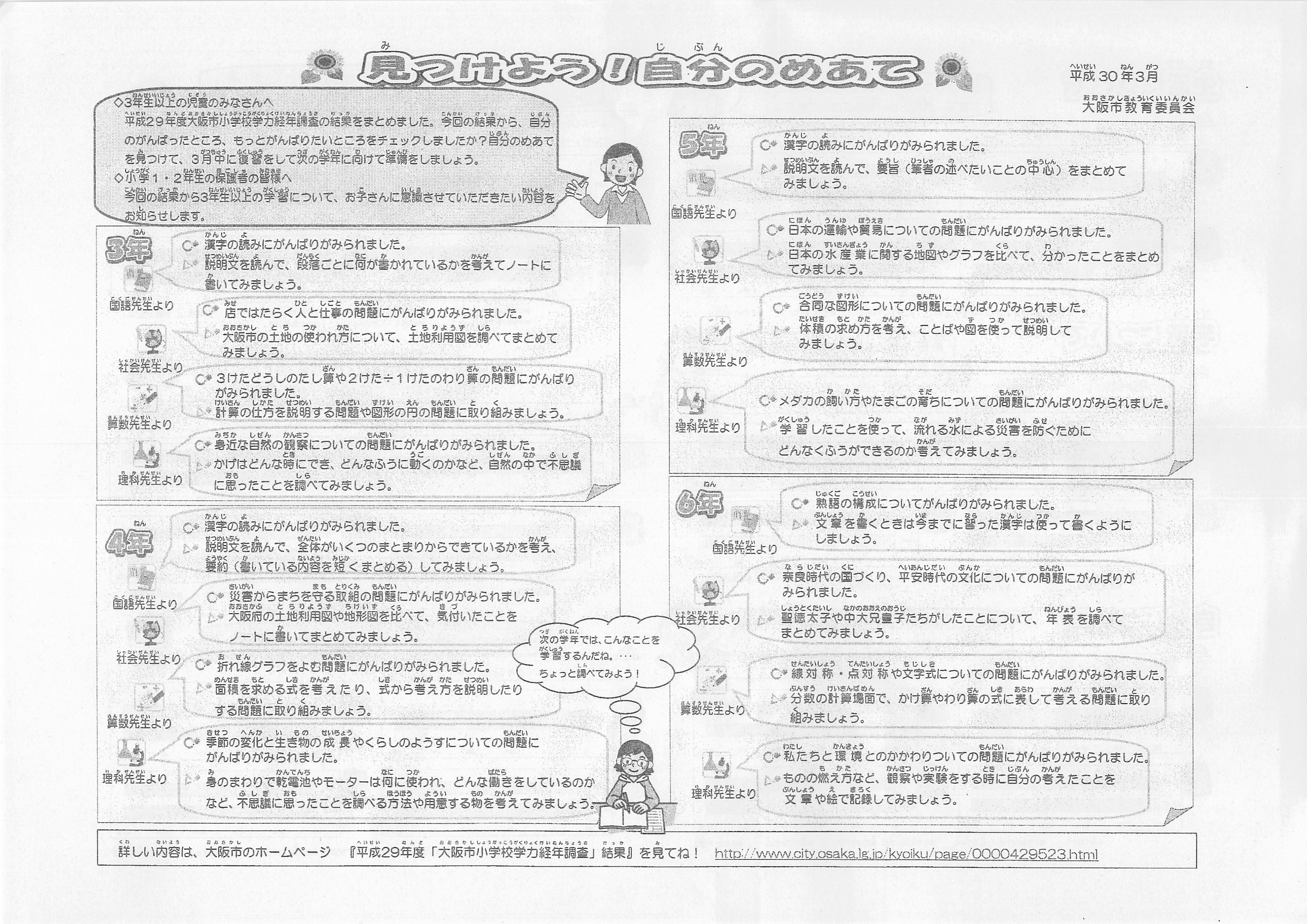 大阪府教育委員会作成「力だめしミニプリント」全国学力・学習状況調査で「基礎的な知識や技能が身についているかどうかみる問題」