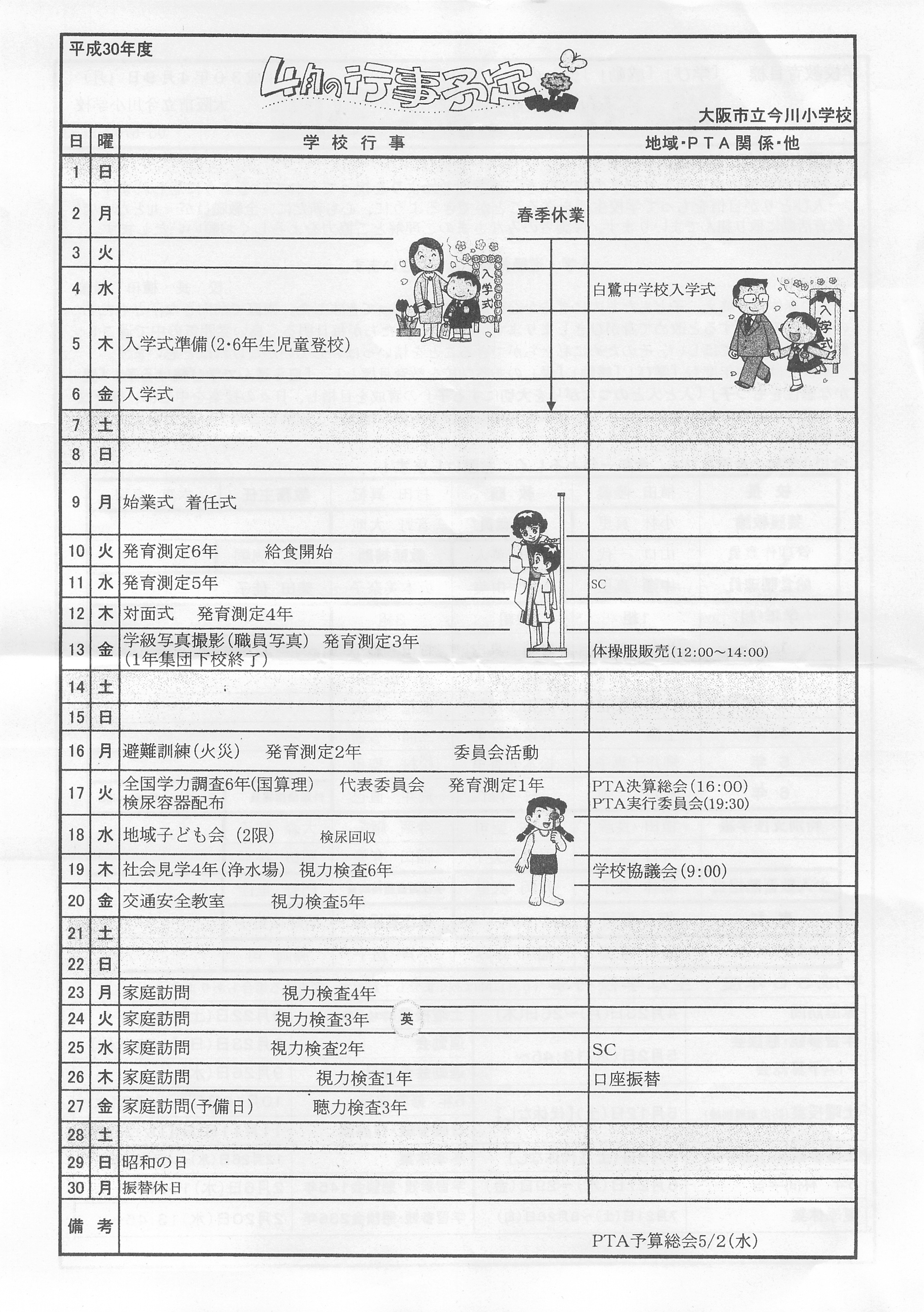 学校だより4月号(裏)
