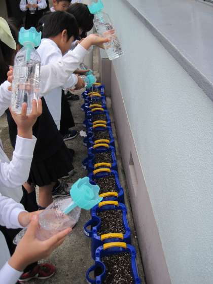 1年生はあさがおを植えました。