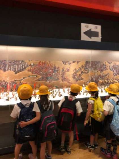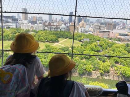 天守閣に到着しました。子どもたちは「高い!」「ハルカスあった!!」と、大阪市のようすを見ることができました。