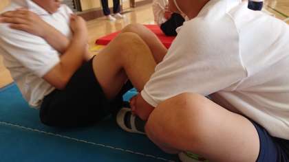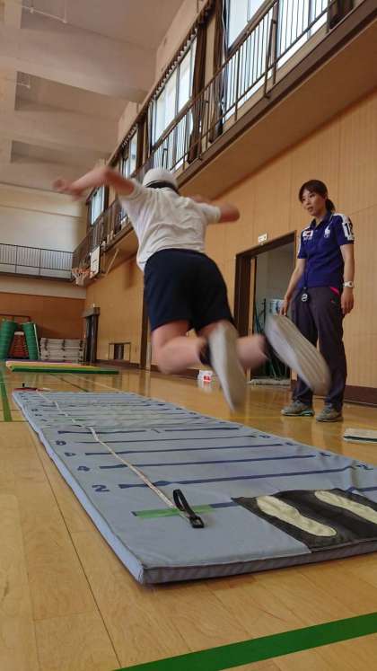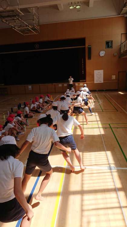 講堂では、立ち幅跳び、長座体前屈、上体起こし、反復横跳び(1・2年生は、実施せず)を計測しています。