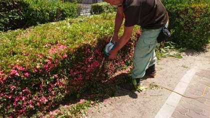 学校の周りを青々と茂っていた草花や樹木を管理作業員が、剪定をして学校を綺麗にしています。近隣住民・周辺道路を歩行中の皆様にはご迷惑をおかけしますが、ご理解いただきますようよろしくお願いいたします