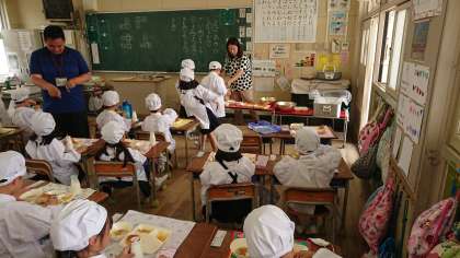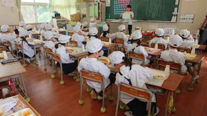 入学して2カ月が経ち、みんな学校生活にもなれてきました。4月の間は、6年生に手伝ってもらい、給食当番が準備をしていました。5月には、自分たちで用意から食事して後片付けまでスムーズにできるようになっています。