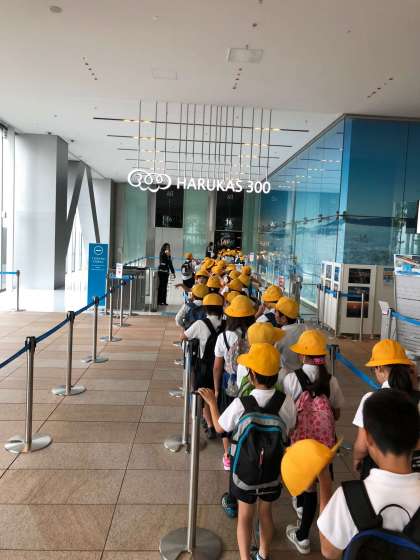 ハルカスに着きました。いよいよエレベーターで60階の展望台まで上がります。何秒で着くかな?
