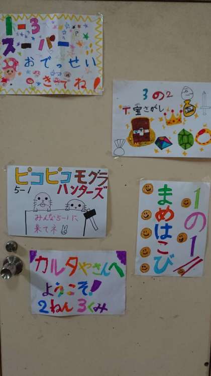 校内に今川フェスティバルのお店についてのポスターを各学級で作成しました。