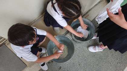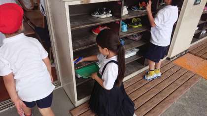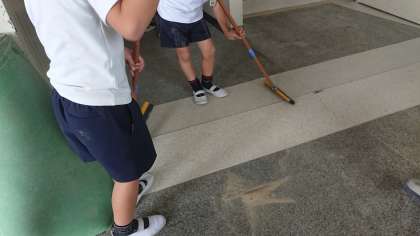 みんなほうきやぞうきんを上手く使ってそうじをすることができています。