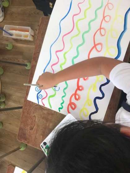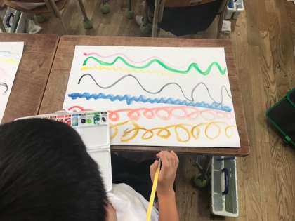 水の量を変えたり、いろんな色を使って線を描いたり、楽しく学習しました。
