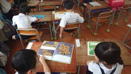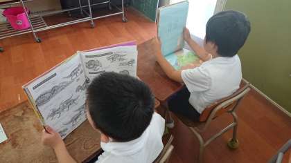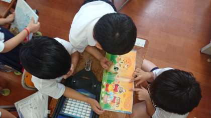 雨の日は、教室で静かに過ごしています。読書をしたり、友達とおしゃべりしたりしています。