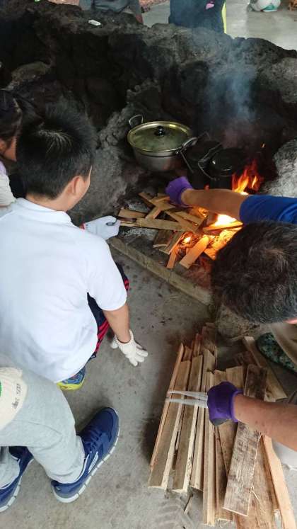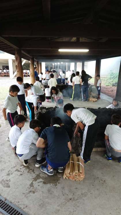 火おこしの真っ最中