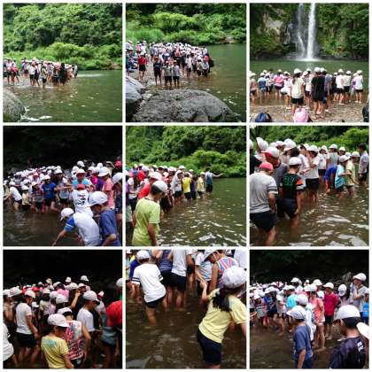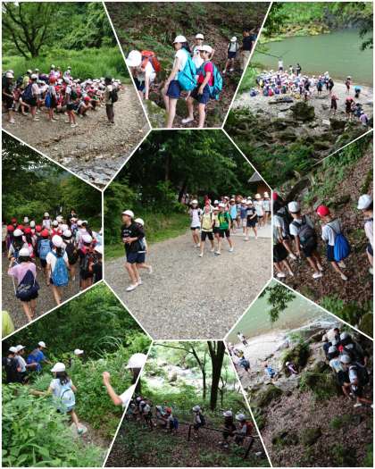 山奥から流れてくる川の水は、魚つかみで入った水よりも冷たかったです。子どもたちは、少しだけ足を水につけましたが、