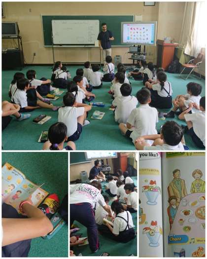 毎週金曜日は、Mr.Brandon 先生と一緒に、外国語を声に出したり、体を動かしてたりしてリズムにのって楽しく活動しています。