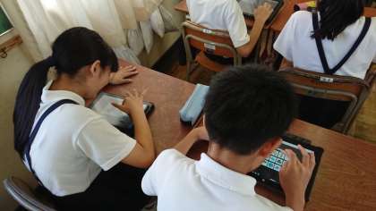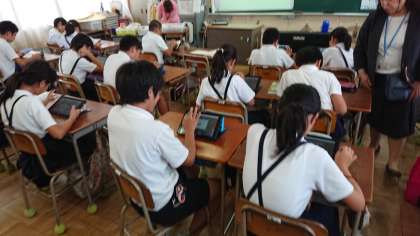ブラウザ上にあるサイトを使ってプログラムを作成し命令を出して、イラストなどを動かしました。子供たちは、さまざまプログラムを組んでアニメーションを作成しました。自分が作成したプログラムが起動すると驚きと喜びを感じていました。
