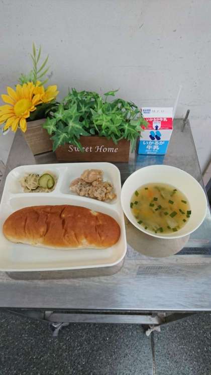 鶏肉のから揚げ、とうがんの中華スープ、切り干し大根の辛みづけ