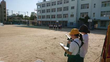 放課後を使って児童会の子どもたちが、運動会の開閉会式の練習に取り組んでいます。どの子も真剣な眼差しで緊張感をもって頑張っています。