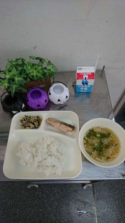 さけのしょうゆ風味焼き、五目汁、高野どうふのいり煮