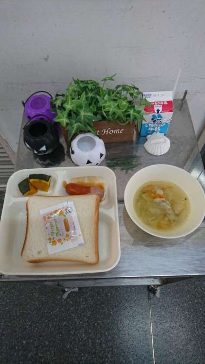 フランクフルトのケチャップソース、スープ、焼きかぼちゃ