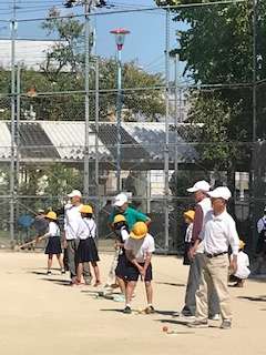 3年1組が、地域の菊寿会の方々にグランドゴルフを教えてもらいました。初めての経験の子がほとんどでしたが、何回もボールを打っていくうちに見る見る上手になりました。ホールインワンを達成した子が7人も!これには地域の方もびっくりされてました。2組、3組も後日順に体験していきます。