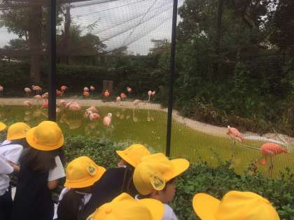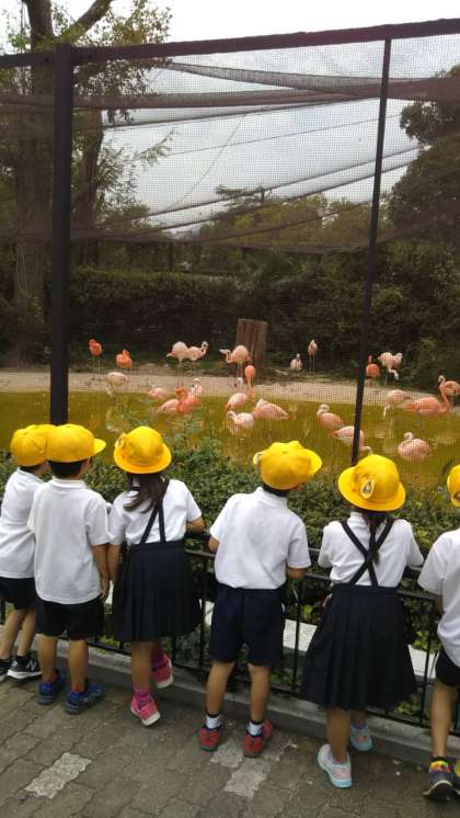 残念ながら、雨がぽつぽつと降ってきたので、学校に帰り、お弁当を食べます。
