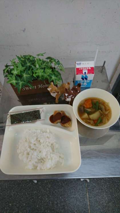 みそカツ、じゃがいもと野菜の煮もの、焼きのり