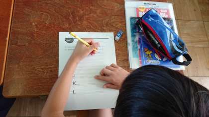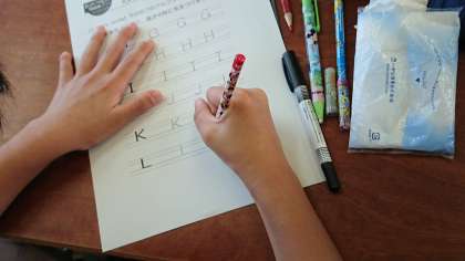 手本を見て、大きさや形に気をつけてながらアルファベットを書きました。