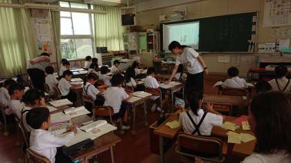 「かいがら」の物語を読んで、そこに出てくる登場人物は誰なのかについて考えました。1文1文、丁寧に読み解いています。
