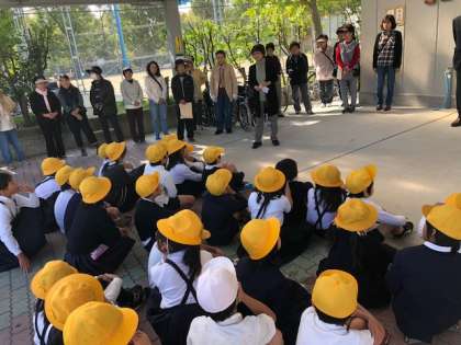 アイマスク体験では、「段差あるよ。」「右に回るよ。」と声をかけながら歩いていました。