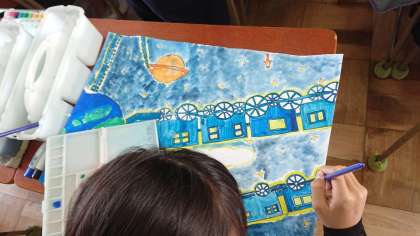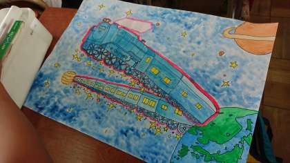 「銀河鉄道の夜」というテーマで描きました。