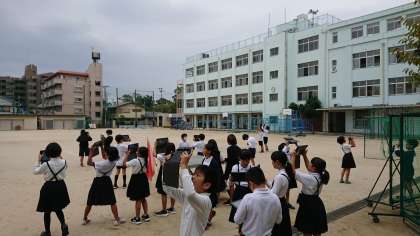「雲と天気には何か関係があるのだろうか」という疑問から、空の様子をタブレットのカメラで撮影して観察しました。撮影した画像を教室に戻り見返しながら学習に取り組みました。