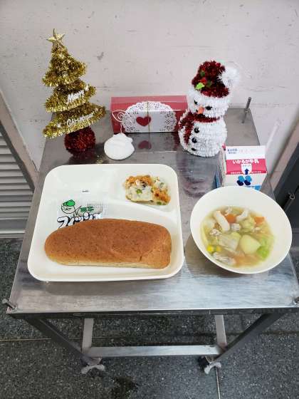 鶏肉とじゃがいものスープ煮、きのこのドリア、ミニフィッシュ